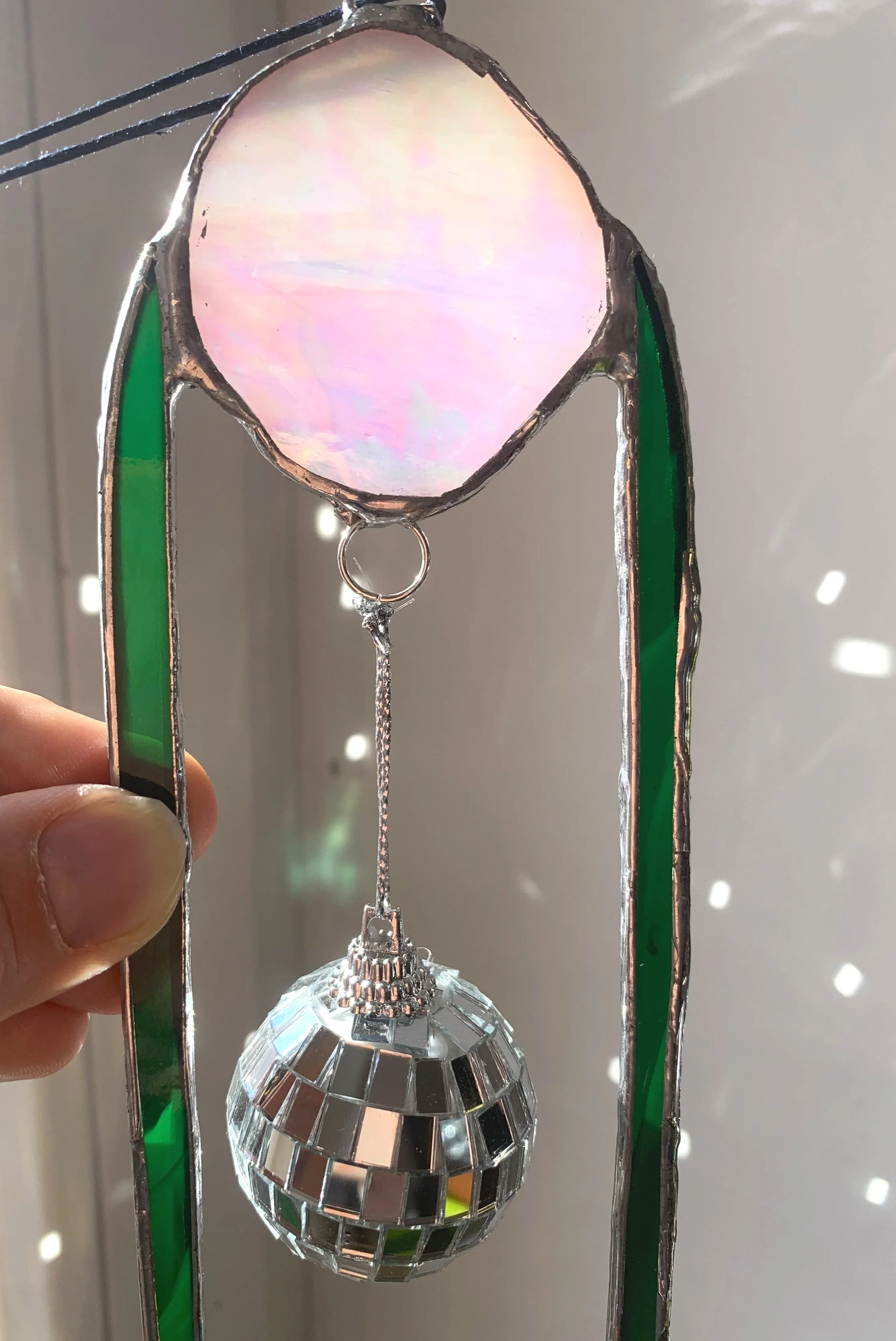 Alle Schnellansicht Glaslampe bunt/weiß/Amethyst Wasserglas Ausverkauft Schnellansicht green / iridescent Glass with disco ball pendant Ausverkauft